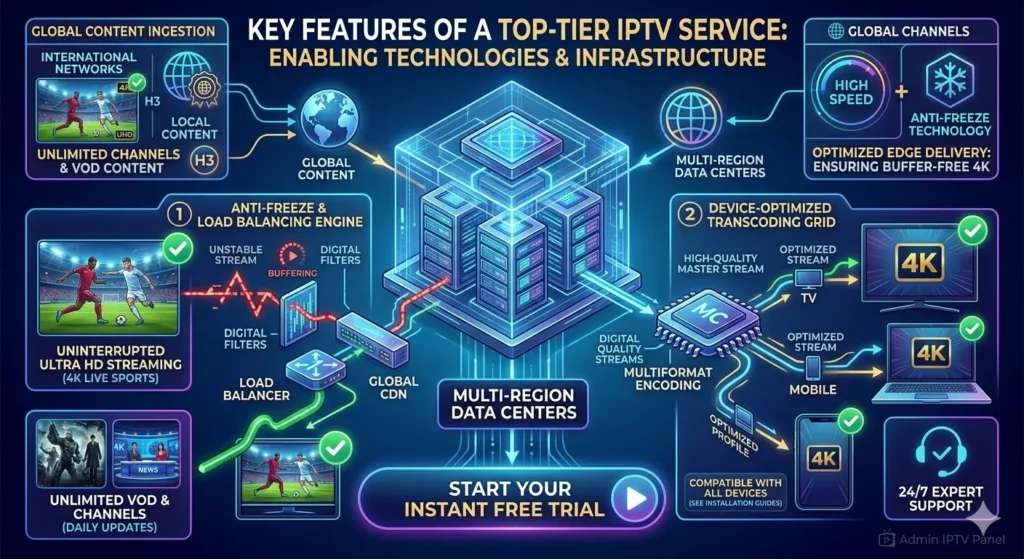 The most common complaint among streaming users is buffering, often referred to as “freezing.” This occurs when a server is overloaded and cannot transmit data fast enough to keep up with the broadcast. Premium providers invest heavily in advanced anti-freeze technology and globally distributed servers with 99.9% uptime guarantees. When you utilize Admin IPTV Panel, you benefit from load-balancing infrastructure designed to eliminate buffering, ensuring uninterrupted viewing even during high-traffic events.